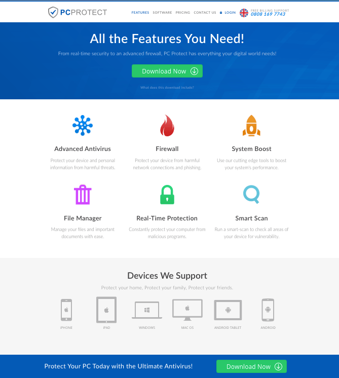 PCProtect funktioniert als Komplettlösung für alle Ihre Sicherheits- und Datenschutzbedürfnisse. Zusammen mit seinem Schutz durch Antivirus, Anti-Malware, Anti-Ransomware und Antispyware erhalten sie auch mehrere zusätzliche Funktionen, die Ihnen helfen, online sicher zu bleiben.