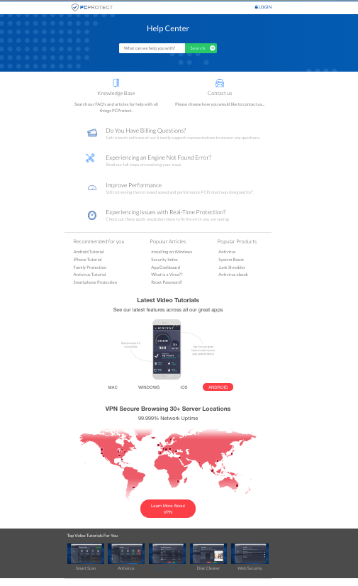 Der Vorteil ist, dass die On-site-Wissensbasis von PCProtect es recht einfach macht, selbst Fehlerbehebung durchzuführen und technische Probleme zu klären, sogar, wenn Sie nicht besonders technisch versiert sind. Es gibt eine Fülle von Schritt-für-Schritt-Tutorials, die in einfachem Englisch geschrieben sind, ebenso wie einfach verständliche Video-Tutorials.